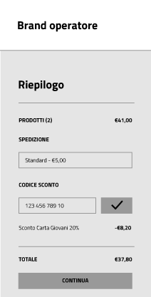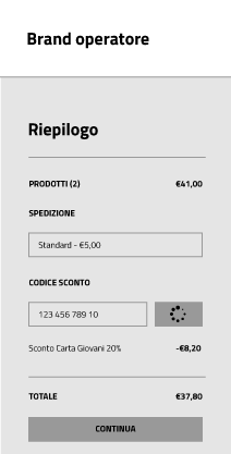 • Il Beneficiario inserisce il codice generato nell’apposito campo predisposto dall’Operatore sul proprio e-commerce per l’applicazione di sconti e opportunità;