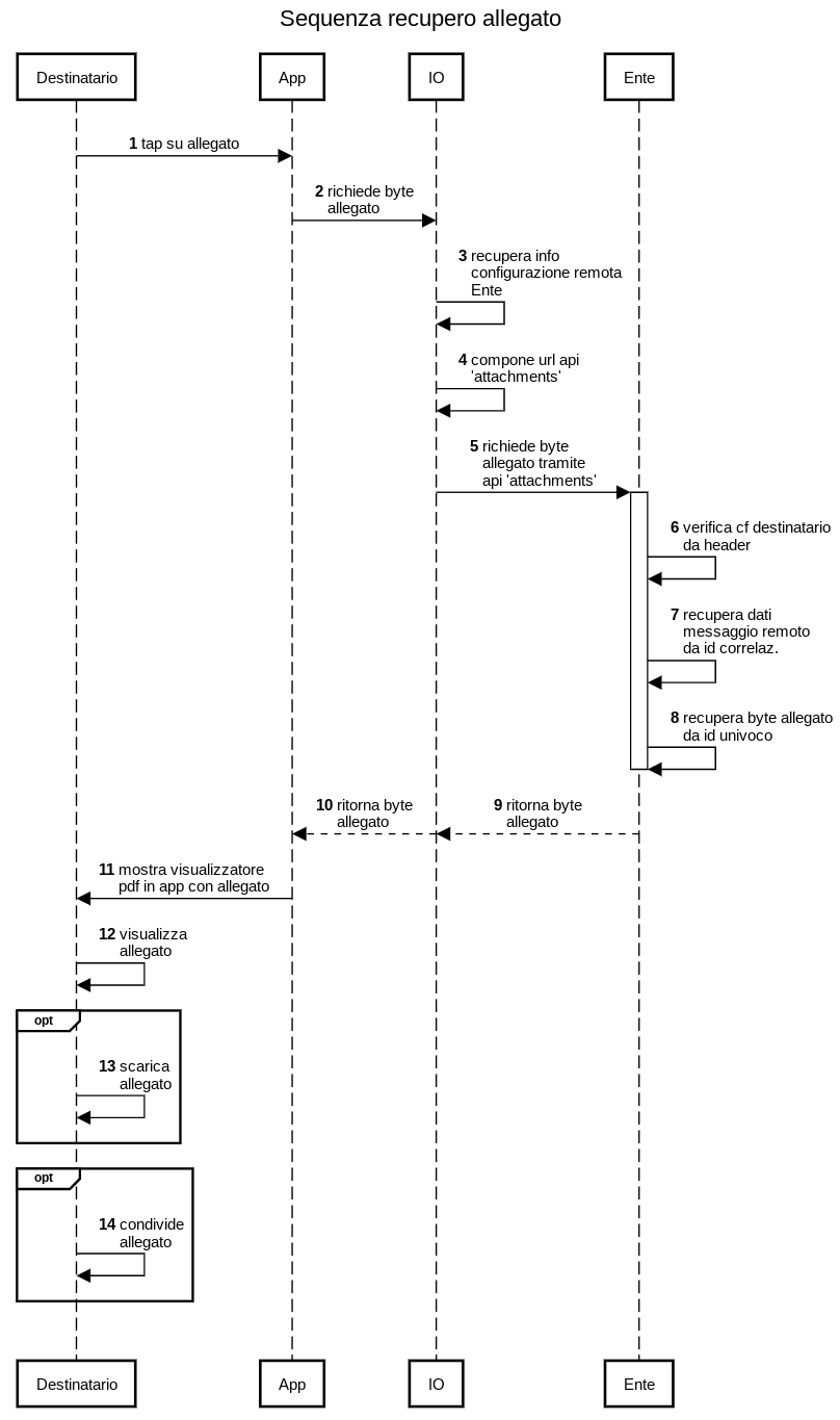 Nel diagramma che segue ti mostriamo la sequenza di eventi che vede coinvolti il suo sistema e quello di IO nello scambio di informazioni col destinatario di un messaggio a contenuto remoto: