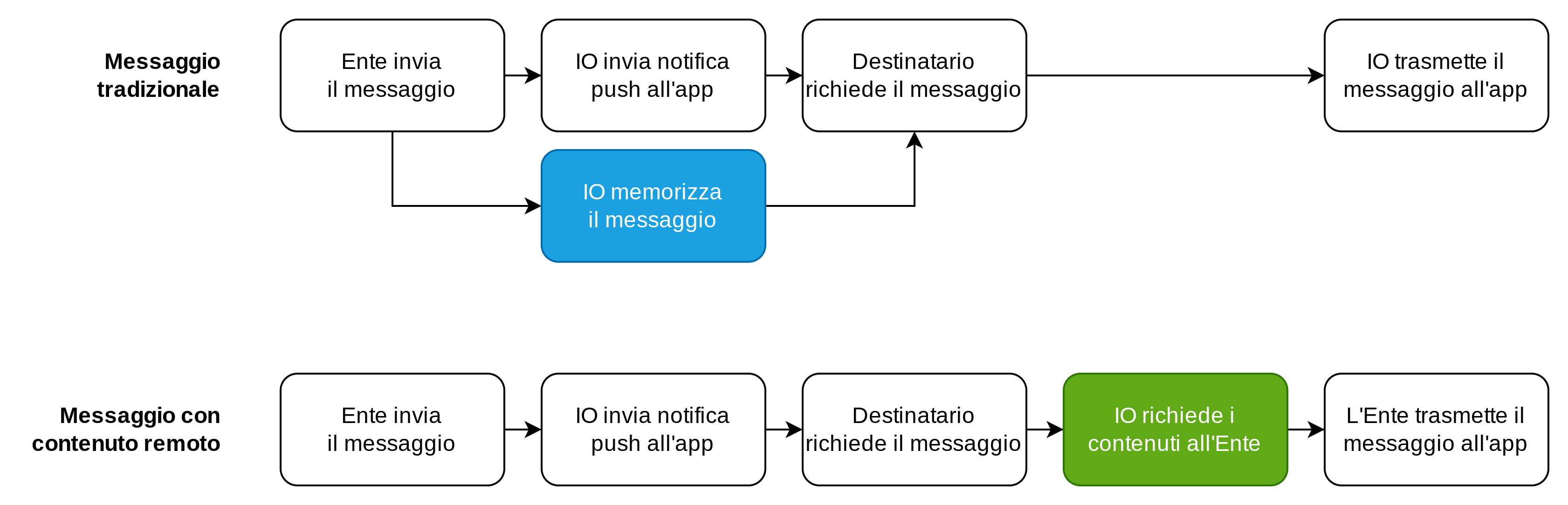 Si tratta di un messaggio le cui informazioni vengono recuperate dai sistemi dell'Ente mittente ogni volta che il messaggio viene fruito dall'utente finale. I messaggi a contenuto remoto sono pensati in particolare per le comunicazioni che veicolano informazioni sensibili.