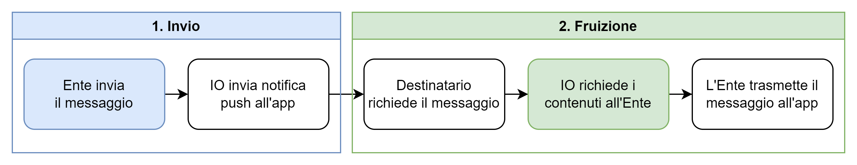 In questo modo, IO fa da canale di comunicazione in tempo reale tra te e il tuo utente e detiene unicamente le informazioni necessarie per consentire il recupero del messaggio e verificarne lo stato.
