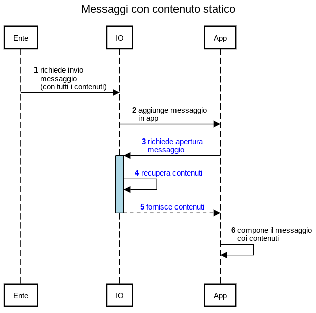 Nello scenario di invio tradizionale di un messaggio su IO, l'Ente richiama l'API esposta per la creazione del messaggio e IO procede alla sua gestione completa in app: