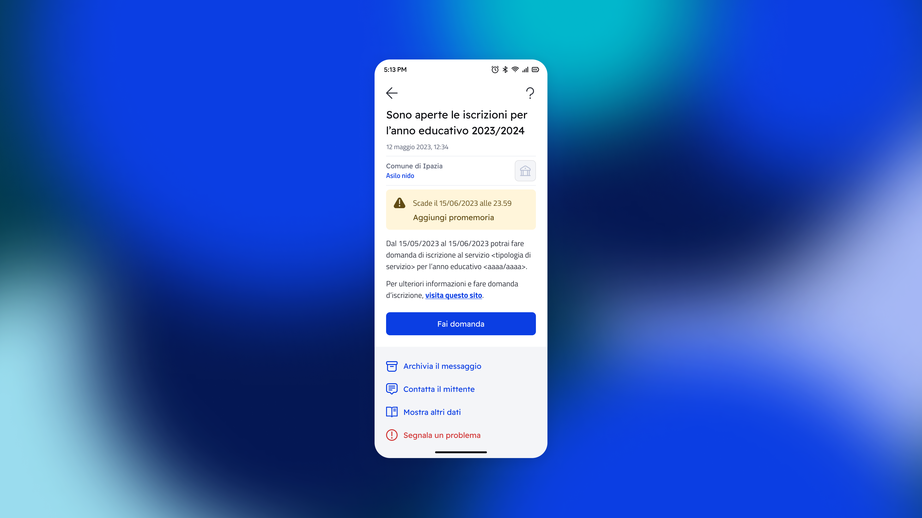 Per segnalare problemi o dare feedback, lascia un commento nello spazio Github dell'app IO