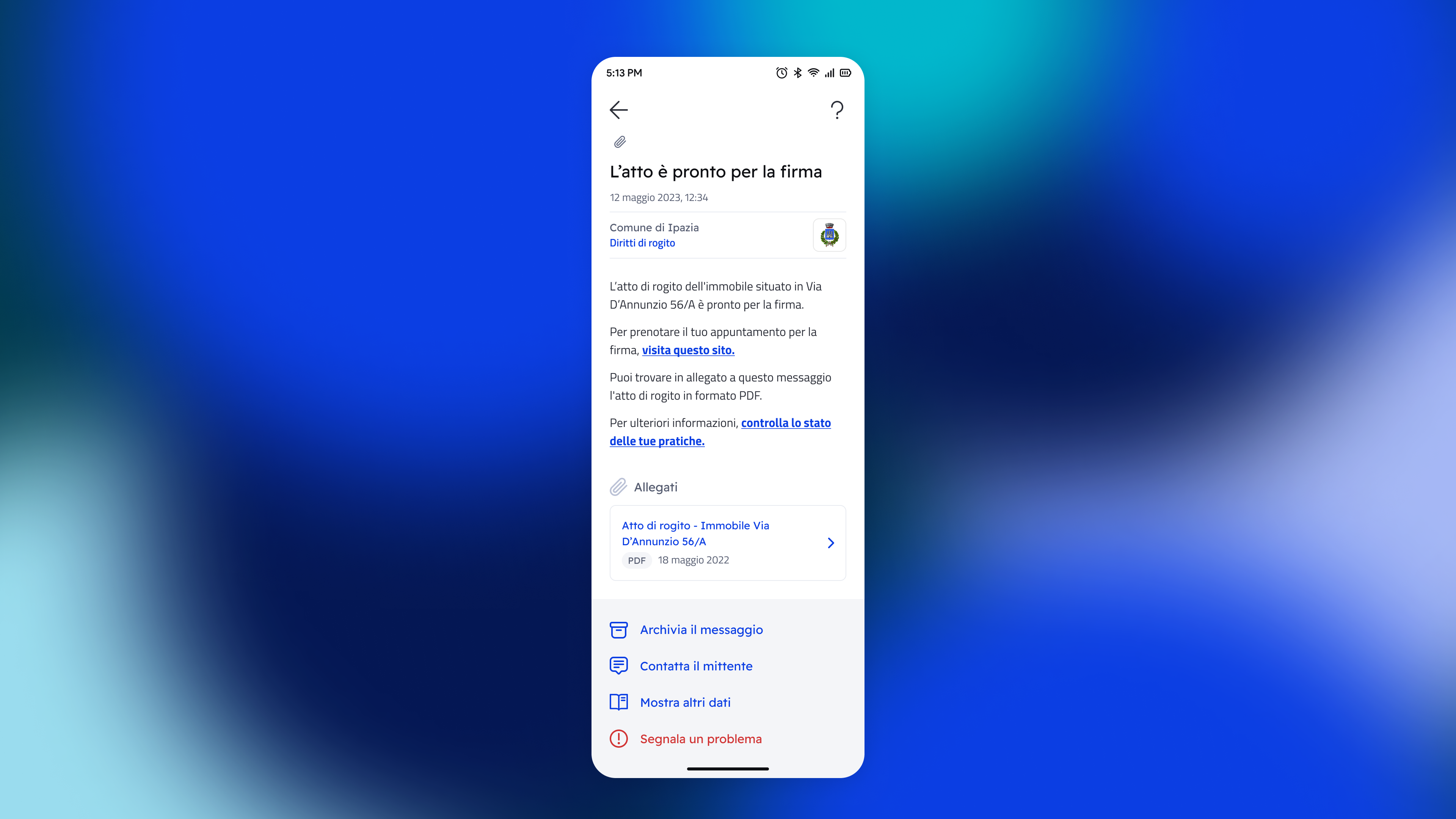 Gli enti che hanno sottoscritto un contratto Premium, possono inviare messaggi con dei documenti allegati.