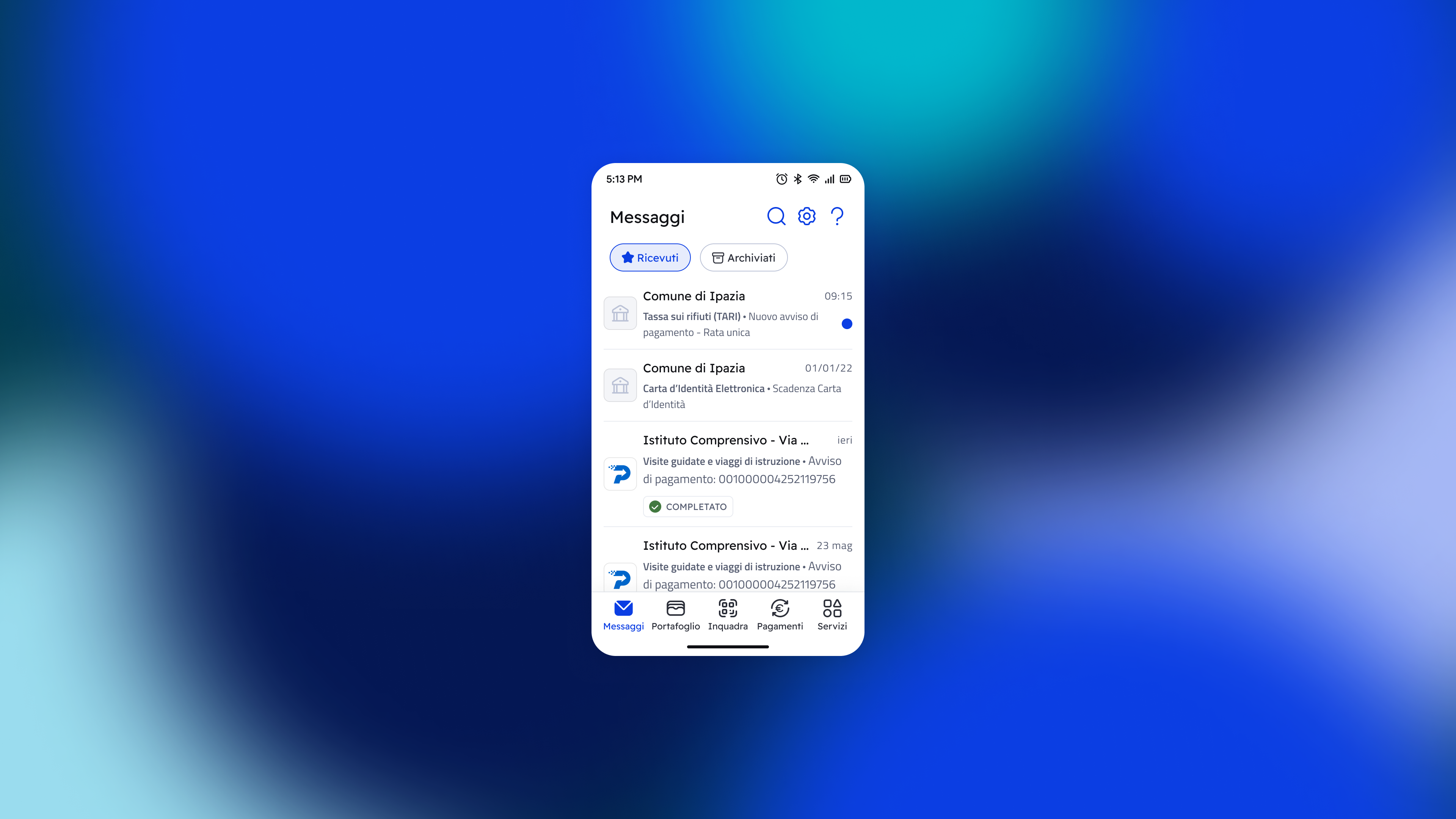 • messaggi informativi: messaggi di testo che possono riguardare un aggiornamento relativo, ad esempio, a un nuovo documento disponibile o a un’istanza presentata all’ente;