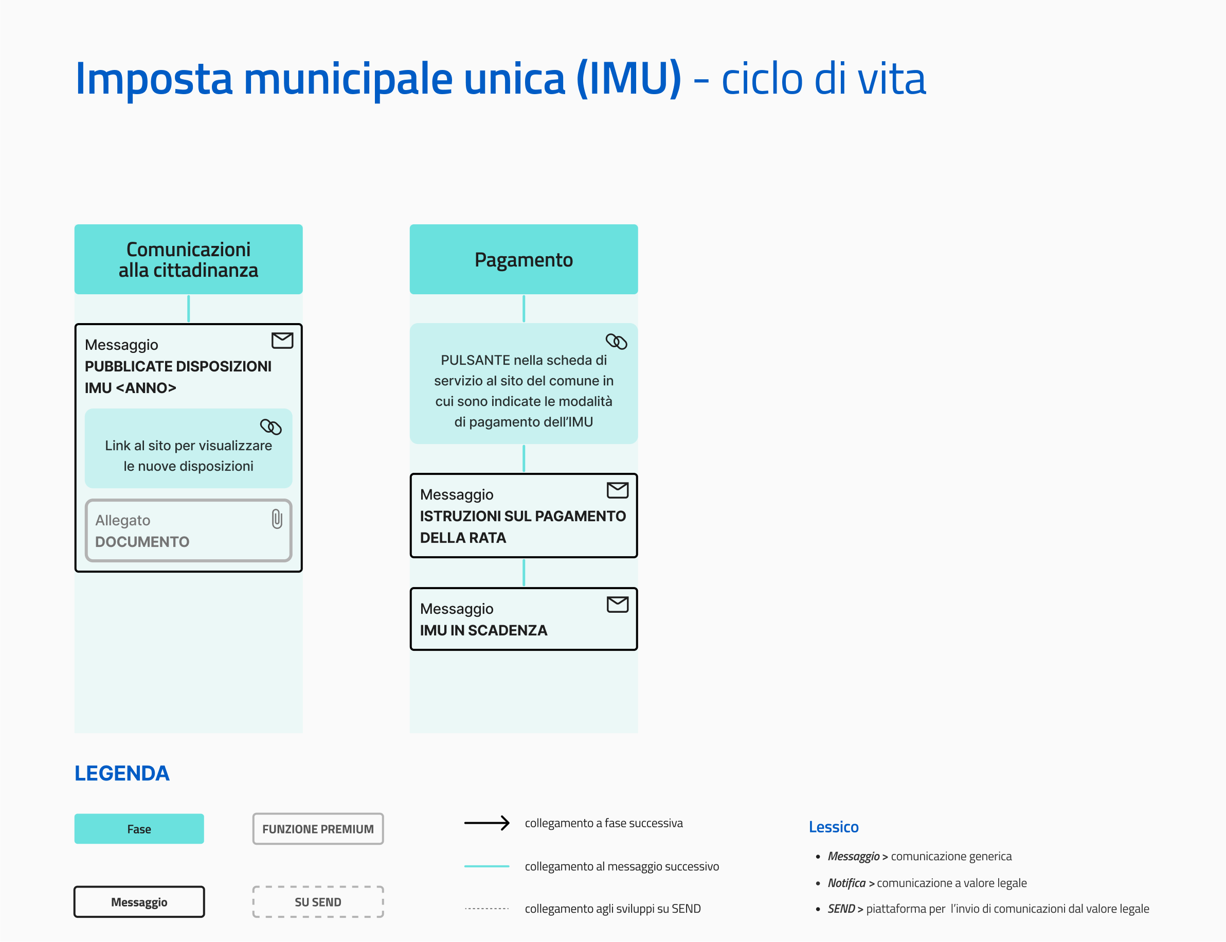- fornire alle cittadine e ai cittadini un riferimento per la ricezione delle comunicazioni riguardanti l'IMU su uno o più immobili, anche di diversi Comuni e con differenti regolamentazioni, se presenti su IO;