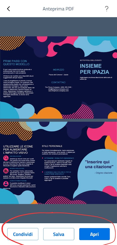 - condividere l'allegato utilizzando una delle app installate sul suo dispositivo