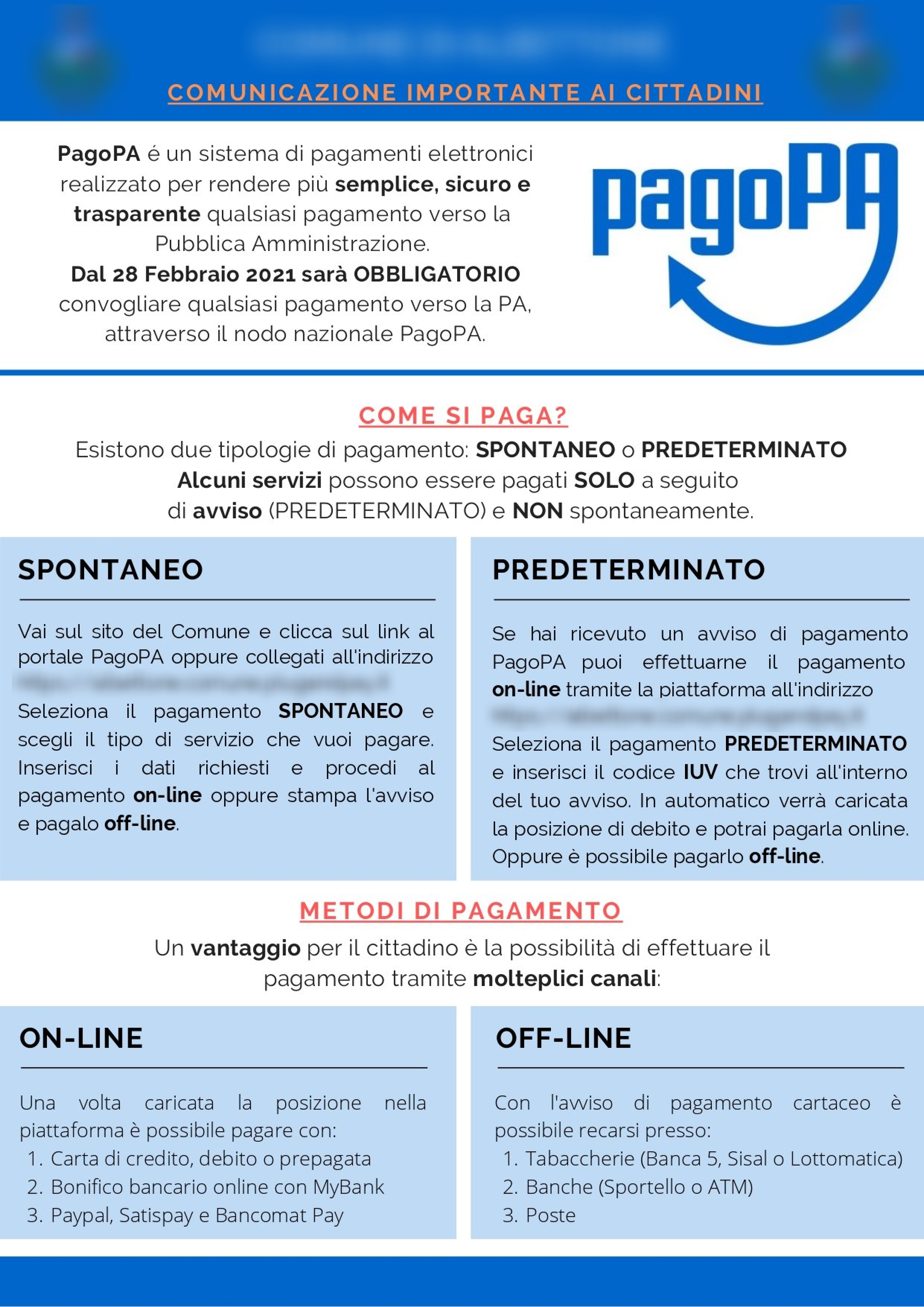 - Scrivere correttamente "pagoPA".