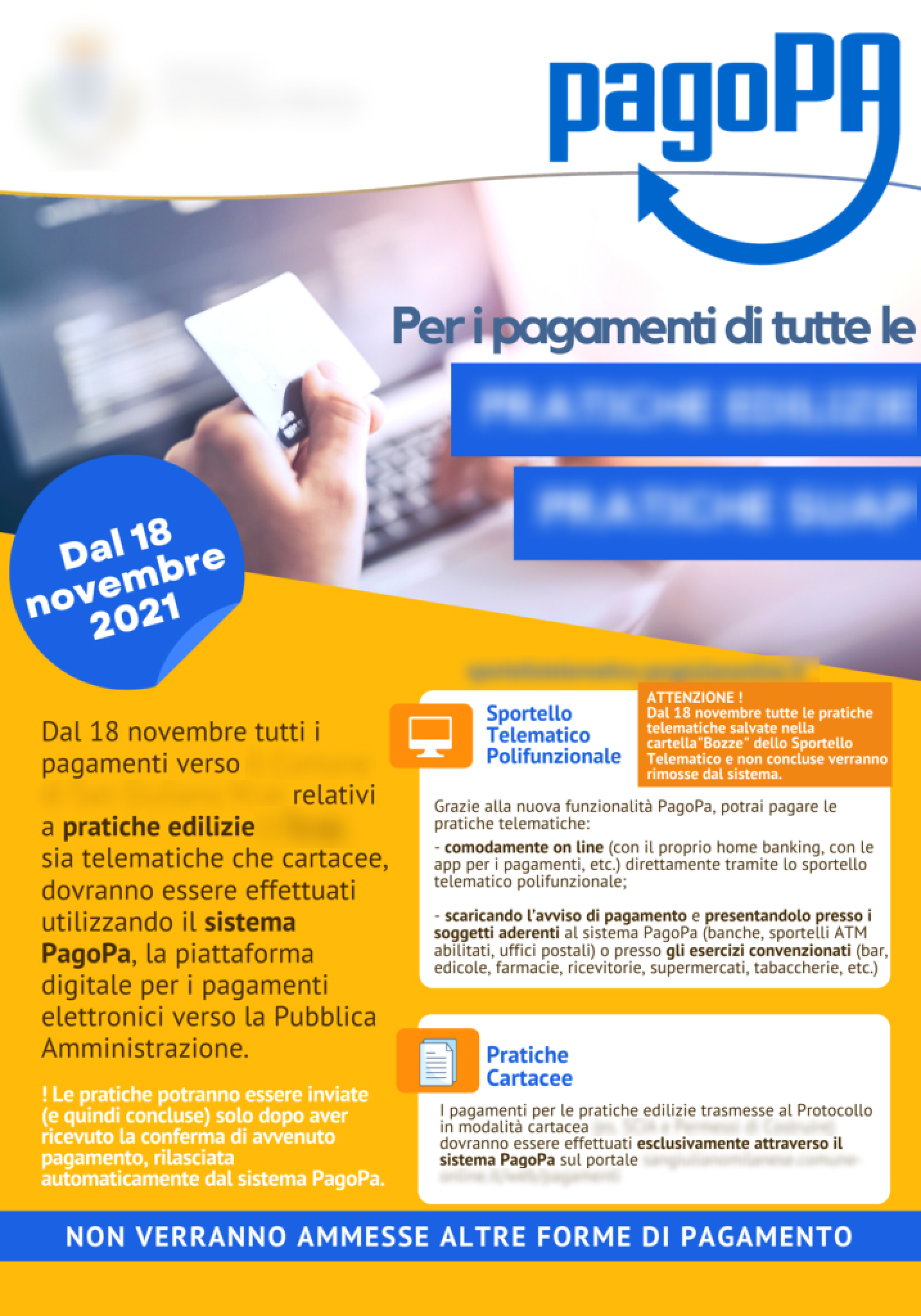 - Parlare di "piattaforma pagoPA" e non di "sportello telematico".