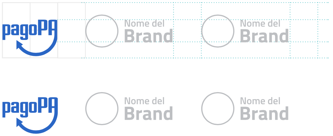La distanza tra il logo pagoPA e gli altri loghi deve essere di almeno la metà della sua larghezza.