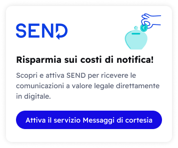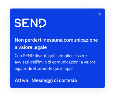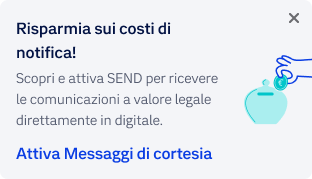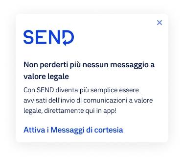 • É importante veicolare correttamente il messaggio all'utente: una volta attivato il servizio, riceverà semplicemente dei messaggi di cortesia, degli avvisi. L'utente NON riceverà direttamente la comunicazione a valore legale. Quest'ultima sarà visibile solo su SEND