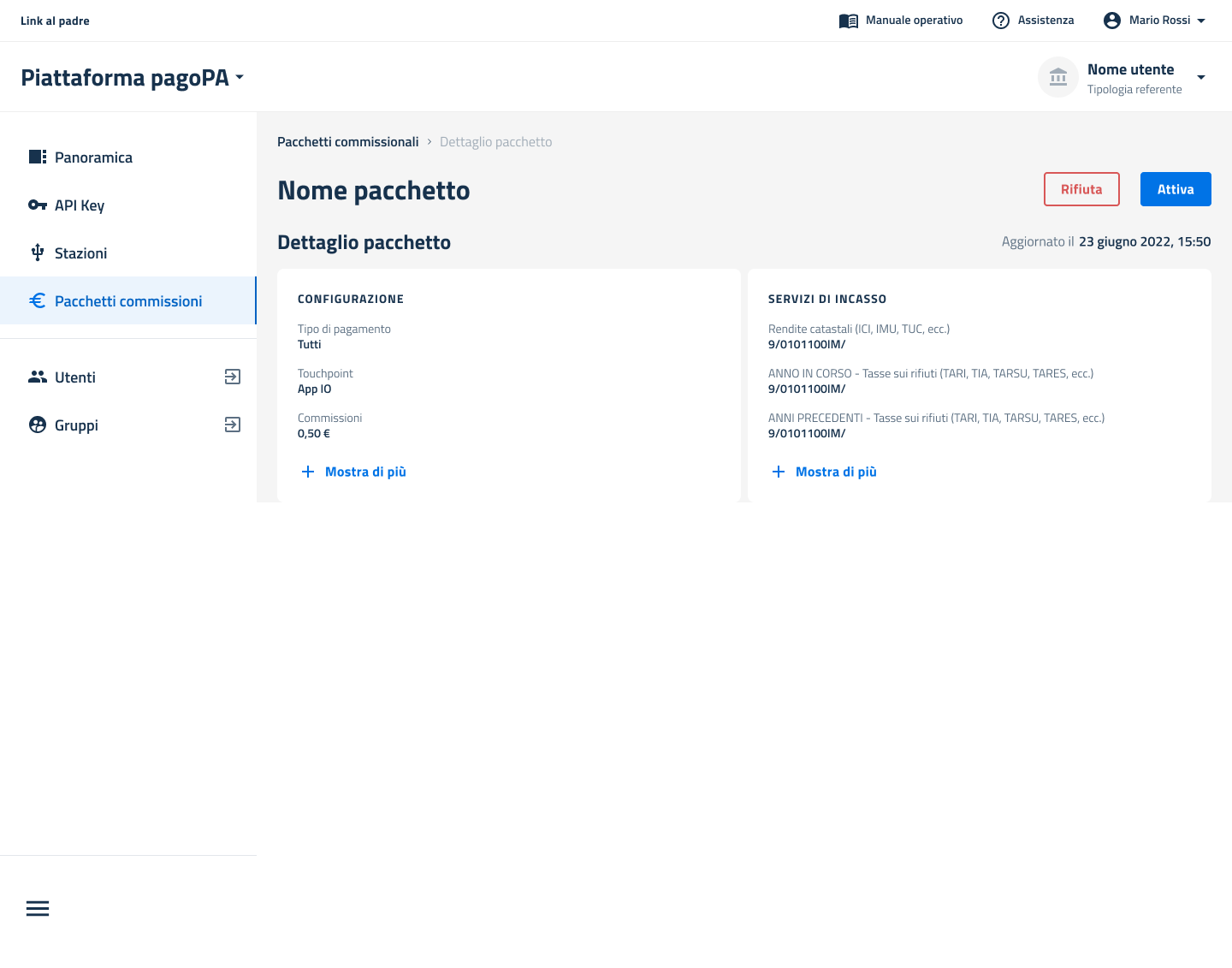 Accedendo al dettaglio di un pacchetto presente nella lista dei pacchetti nello stato "Da attivare" (vedi sezione Visualizza dettaglio), è possibile procedere al rifiuto della richiesta di attivazione per un determinato pacchetto "Su invito".