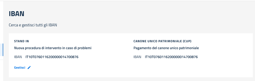Una volta aver cliccato sul tasto "Conferma", l'utente verrà reindirizzato alla Pagina Vista IBAN in cui potrà visualizzare l'IBAN appena creato.