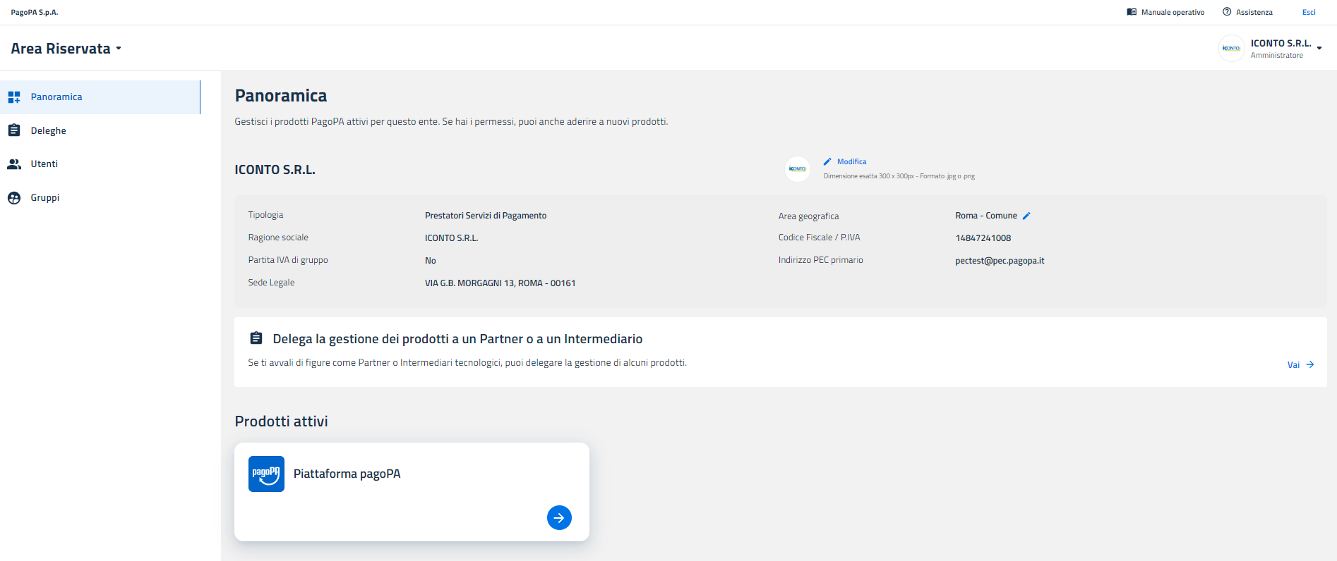 L’Area Riservata di PagoPA è accessibile agli utenti che possiedono un ruolo attivo da Amministratore o Operatore su almeno uno dei prodotti che sono stati attivati dal proprio aderente ed è composta da tre sezioni principali: