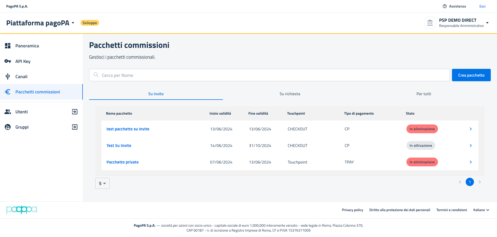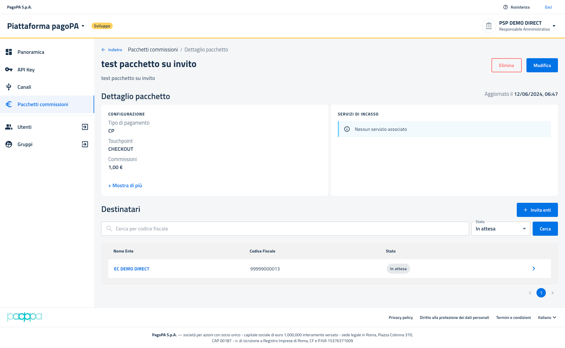 - Non sarà più presente il tasto "Elimina" dato che la richiesta di eliminazione per il suddetto pacchetto è già stata effettuata;