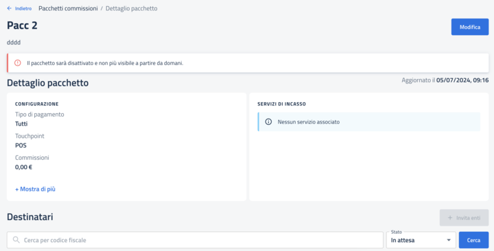 Se si accede nel dettaglio (vedi "Visualizza dettaglio") di un pacchetto presente allo stato "In eliminazione":