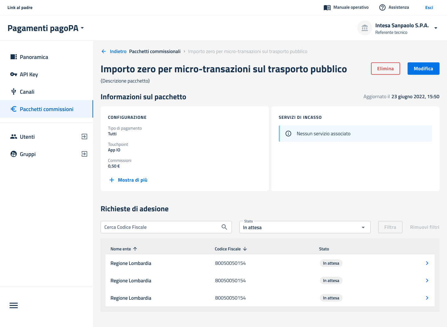 Accedendo al dettaglio di un pacchetto (vedi Visualizza dettaglio) è possibile procedere alla modifica di alcuni parametri del pacchetto.
