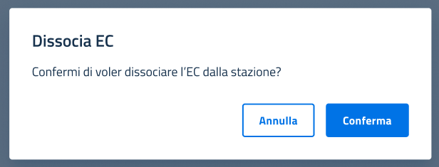Una volta cliccato, l'utente visualizzerà il pop up in cui gli viene chiesto di confermare la scelta di volere dissociare l'EC dalla stazione.