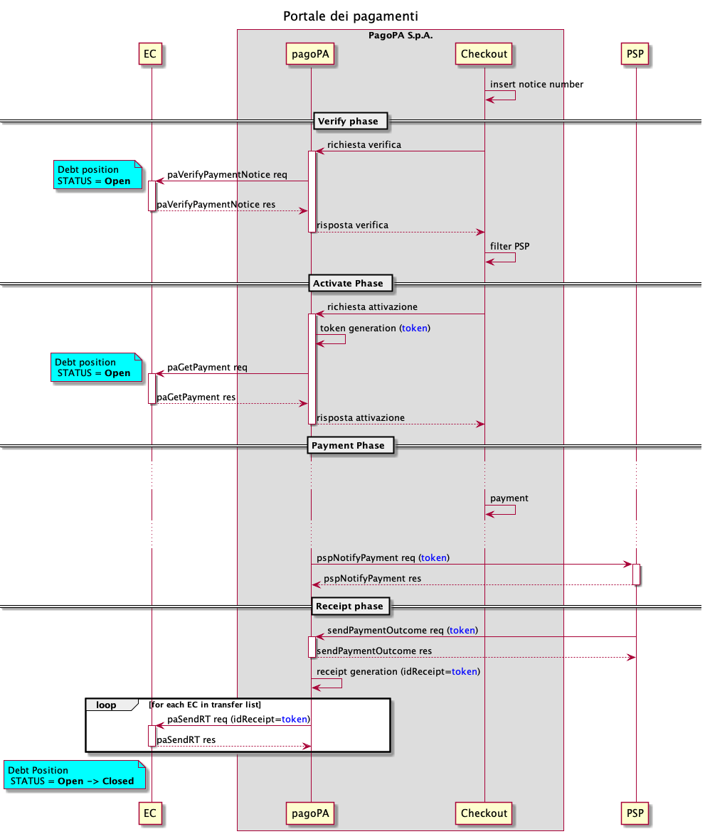 - tramite la primitiva paSendRT viene inoltrata agli n EC interessati al pagamento la receipt (ricevuta) solo se il pagamento è stato effettuato, la receipt è un oggetto generato dalla piattaforma pagoPA;