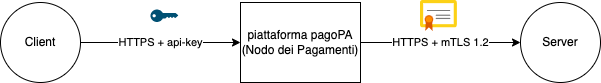 - utilizzo del protocollo di trasporto https con canale cifrato e autenticato mediante Transport Layer Security (TLS) versione 1.2 o superiore, abilitando la mutua autenticazione tra le parti (client-authentication) per quanto riguarda la connettività in uscita dal Nodo dei Pagamenti e utilizzando una api-key per quanto riguarda la connettività in ingresso nel Nodo dei Pagamenti A tal fine è obbligatorio l’utilizzo di certificati digitali x.509 per la creazione del canale TLS. Si fa presente che nel Sistema pagoPA il soggetto direttamente connesso sarà autenticato da parte della piattaforma pagoPA sia in fase di ricezione delle richieste (api-key), sia in fase di spedizione delle stesse (server-authentication);