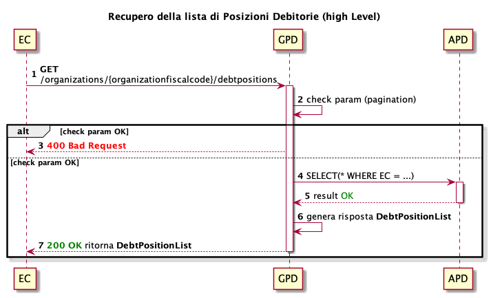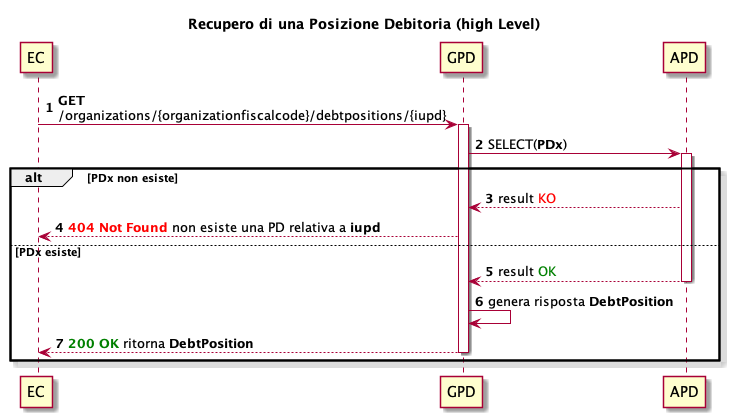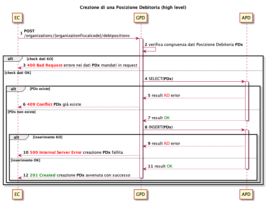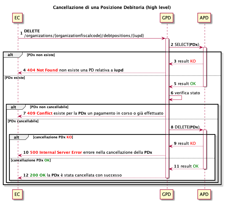 Nei seguenti sequence diagram si identifica con l'acronimo GPD il servizio di Gestione Posizioni Debitorie e con APD l'Archivio delle Posizioni Debitorie (base dati).