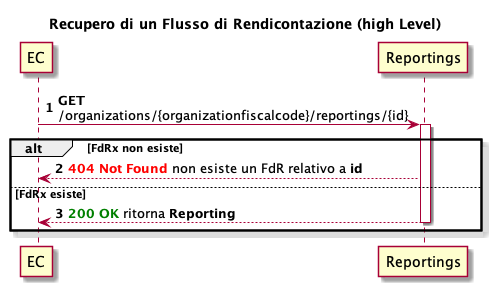 La lettura di un flusso di rendicontazione si basa sull'identificativo del reporting in input (id). In caso non esista un flusso di rendicontazione relativo all'id inserito nella richiesta verrà restituito un errore.