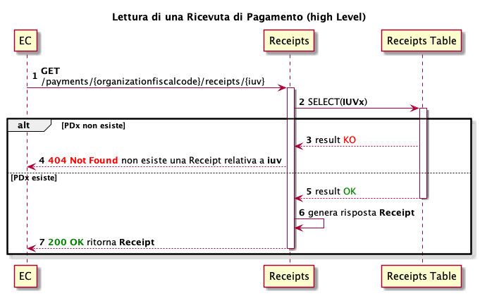 La lettura di una ricevuta di pagamento si basa sull'identificativo in input (IUV). In caso lo IUV non sia esistente o non esiste una ricevuta ad esso associata verrà emesso un errore.