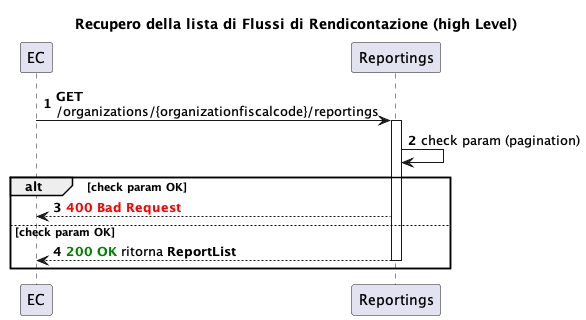 La lettura di un lista di flussi di rendicontazione prevede sempre una paginazione. E' inoltre possibile indicare la data di inizio a partire dalla quale selezionare i flussi.
