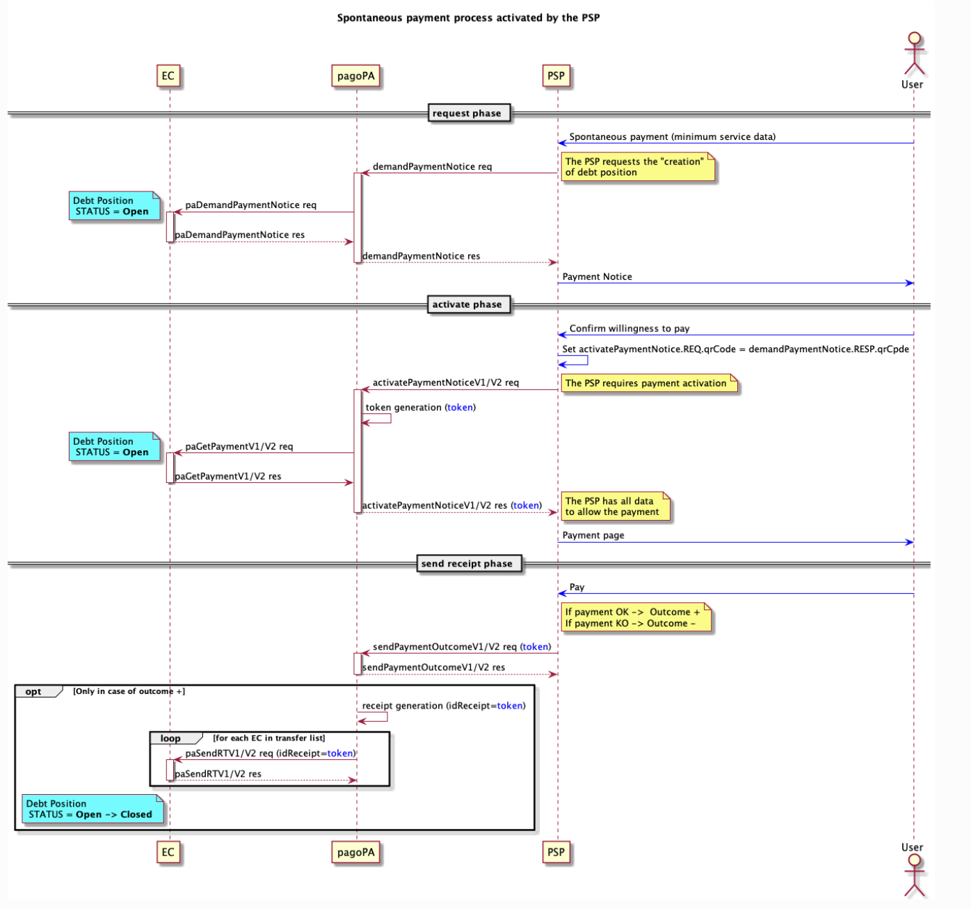 - tramite la primitiva paSendRT viene inoltrata agli n EC interessati al pagamento la receipt (ricevuta) solo se il pagamento è stato effettuato, la receipt è un oggetto generato dalla piattaforma pagoPA;