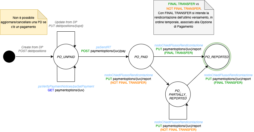 In questa sezione sono rappresentate le macchine a stati delle 3 principali (Posizione Debitoria, Opzione di Pagamento e versamento).
