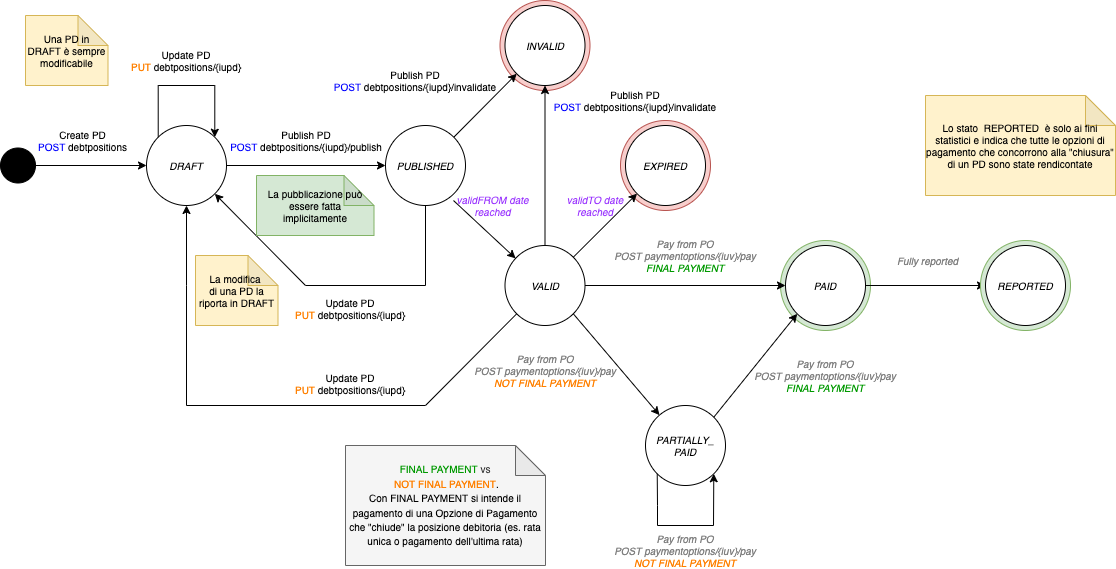 In questa sezione sono rappresentate le macchine a stati delle 3 principali (Posizione Debitoria, Opzione di Pagamento e versamento).