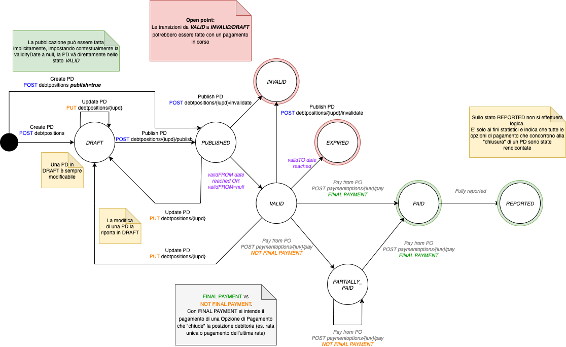 In questa sezione sono rappresentate le macchine a stati delle 3 principali (Posizione Debitoria, Opzione di Pagamento e versamento).
