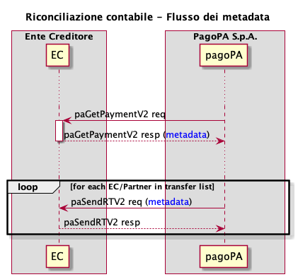 Sfruttando tale flusso ogni software degli EC coinvolti nel pagamento potrebbe ricevere la paSendRT vers. 2 e utilizzare il contenuto dei metadata per gestire la riconciliazione contabile.
