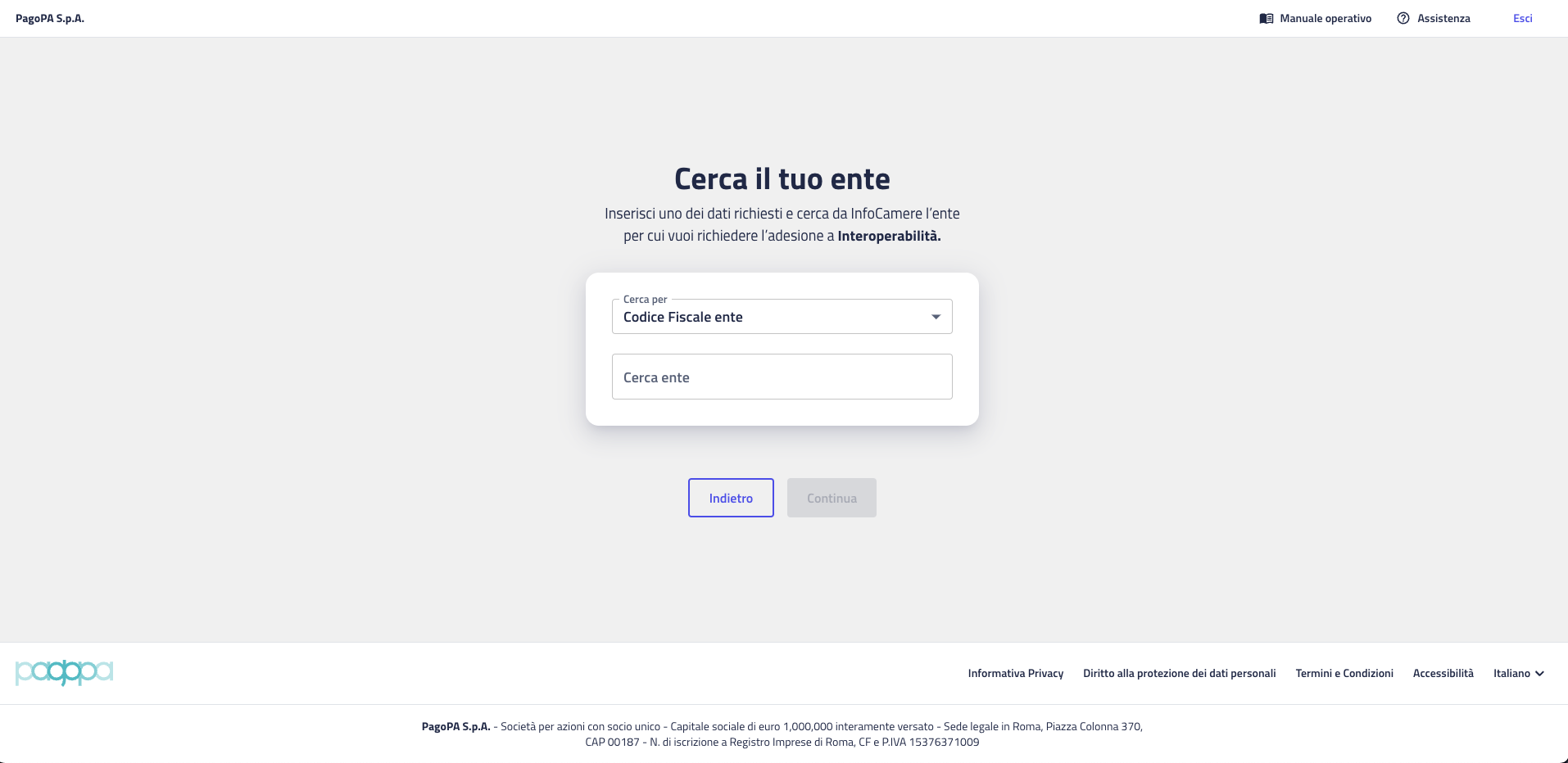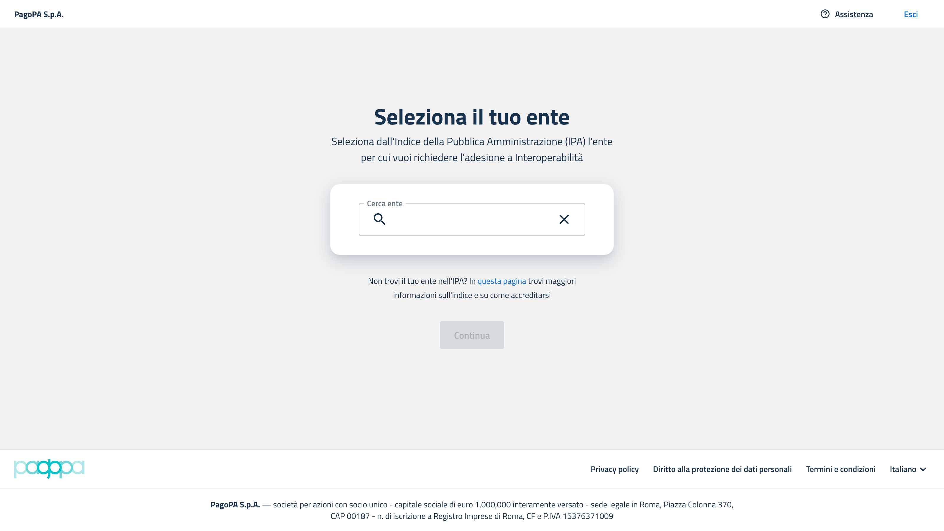 - Se l’ente non è presente, utilizza il link informativo sotto il campo per conoscere la procedura di accreditamento su IPA.