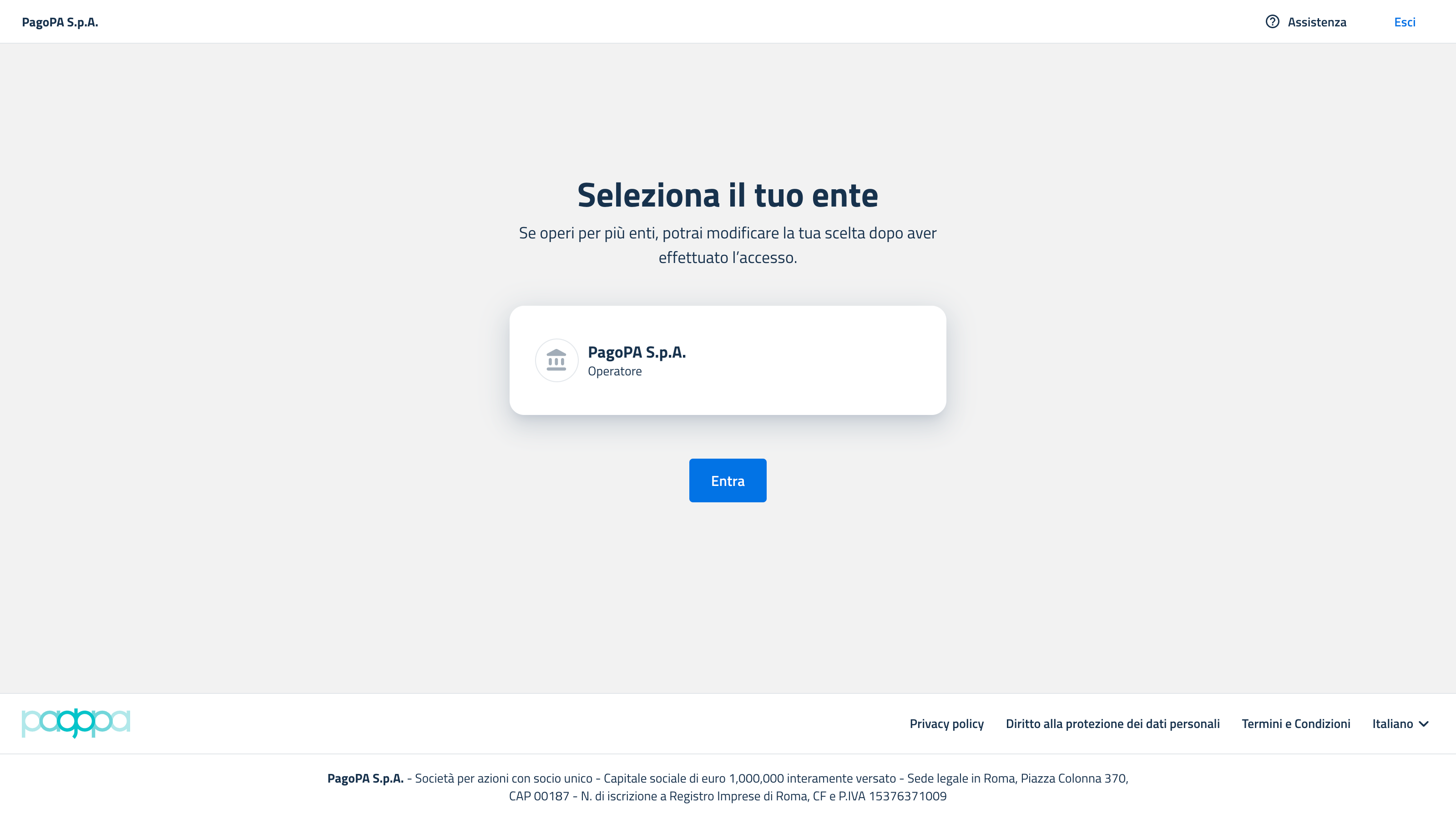 Scegliere l'ente per il quale si opera.