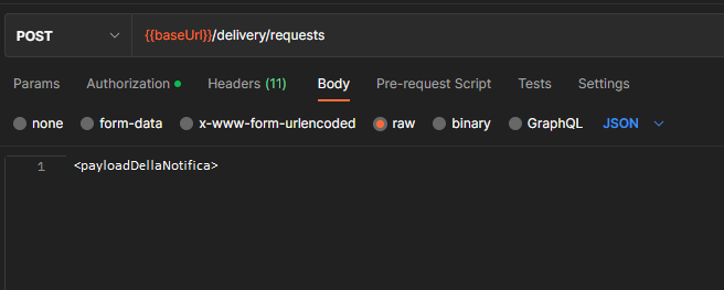 Descrizione step-by-step per l'inserimento della notifica utilizzando Postman