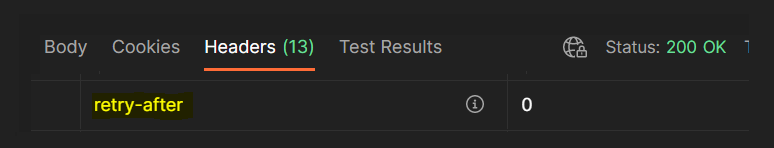NOTA: nell'header della response ottenuta fare attenzione al campo retry-after che deve essere memorizzato per le successive chiamate: