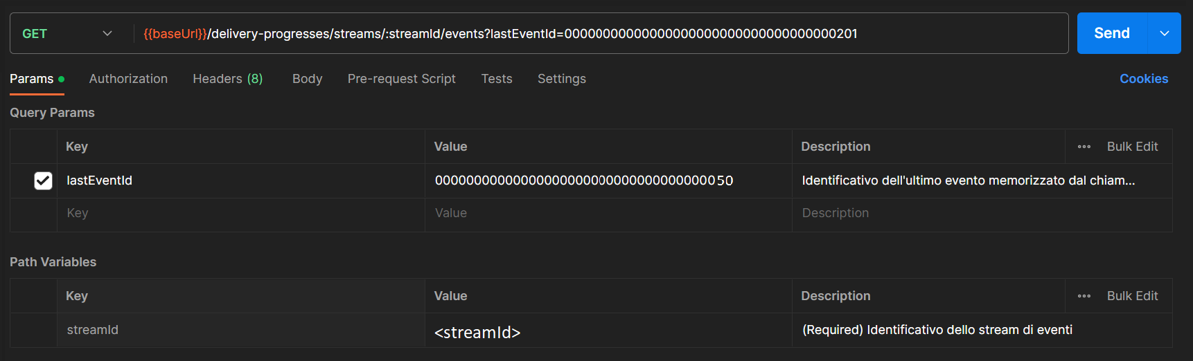 - <streamId>: inserire l'id dello stream che si vuole interrogare