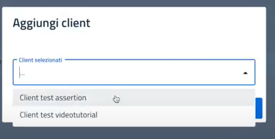 Infine apparirà un menù a tendina che permette di selezionare i client da associare:\