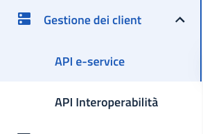 Per creare un nuovo client bisogna andare nella sezione Gestione dei Client > API e-service e cliccando su "+1 Crea Nuovo"