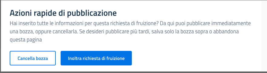Quando la richiesta di fruizione è stata compilata con successo, cliccare su "Inoltra richiesta di fruizione"