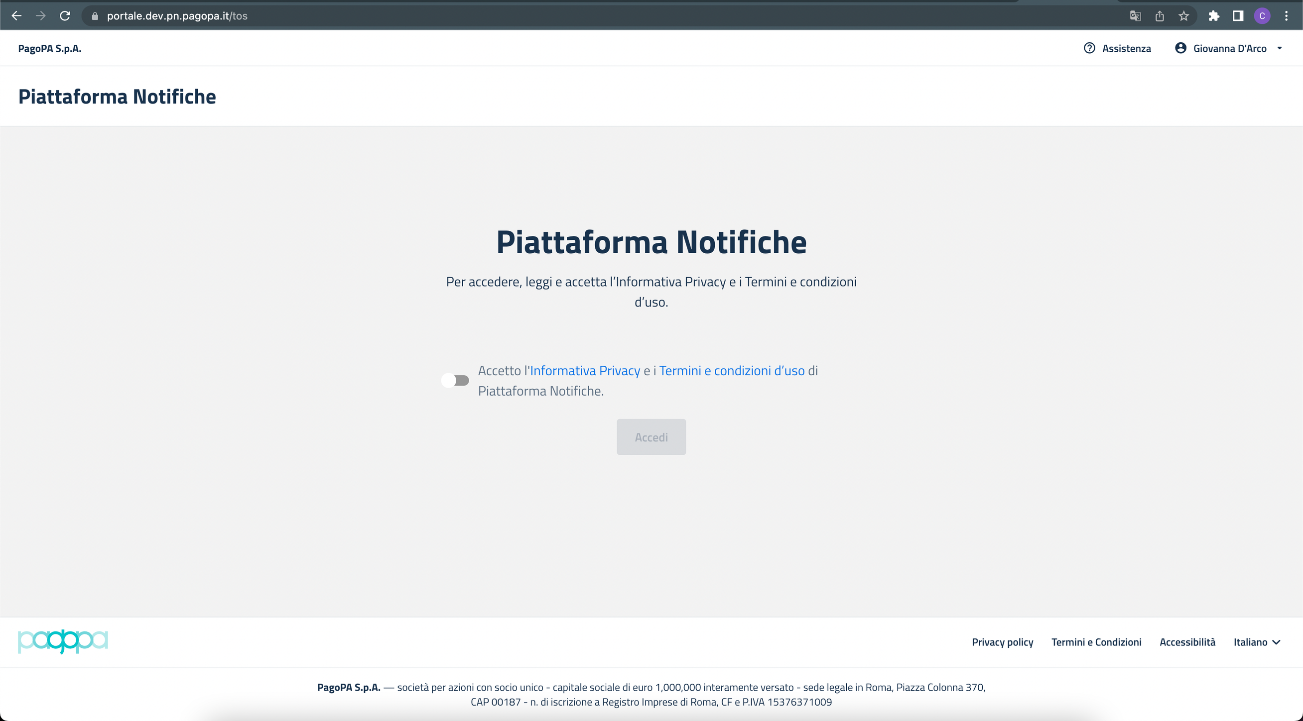 Accesso a Piattaforma Notifiche