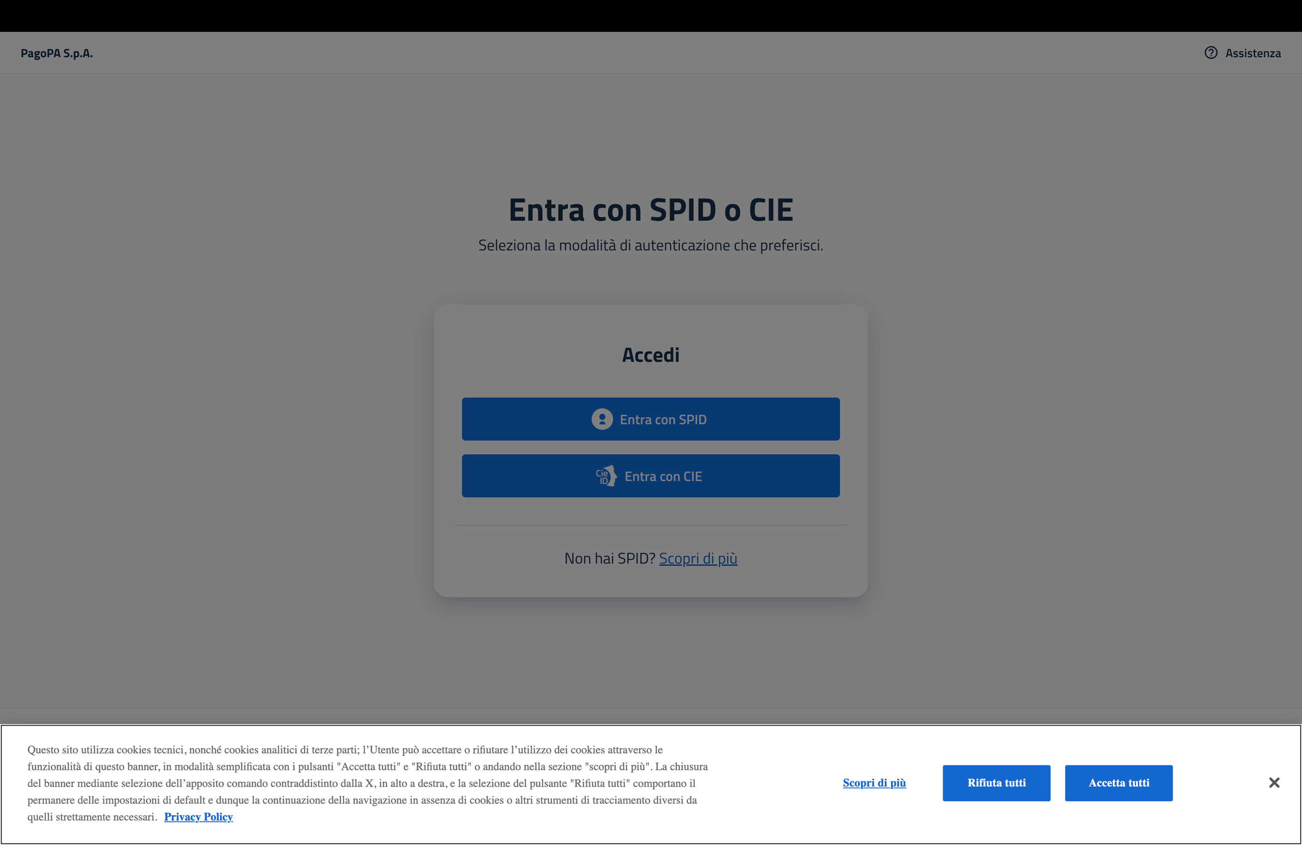 Al primo accesso l’utente deve confermare la presa visione dei termini di servizio (ToS) e dell’informativa privacy.