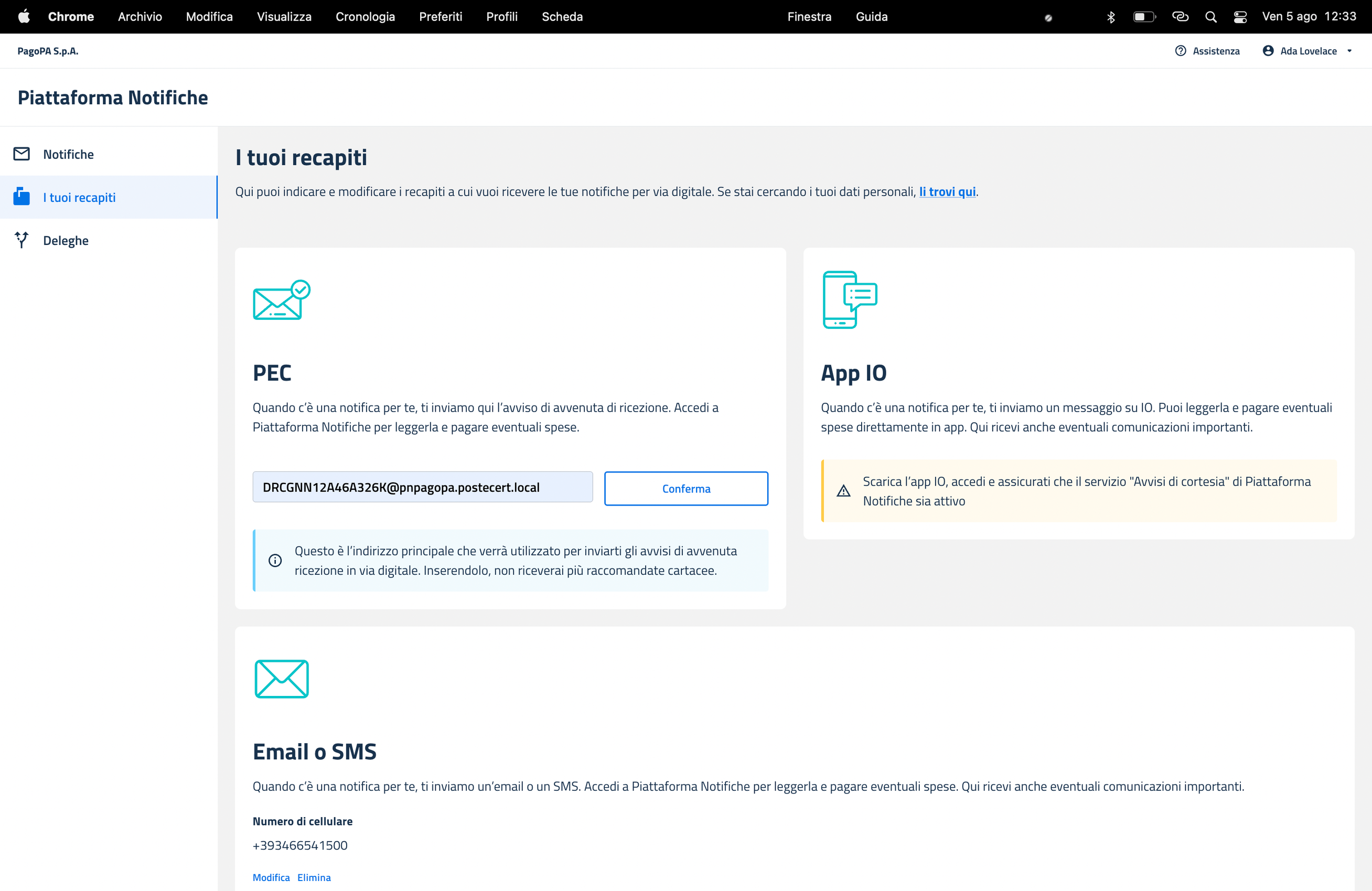 Aggiunta di un recapito legale