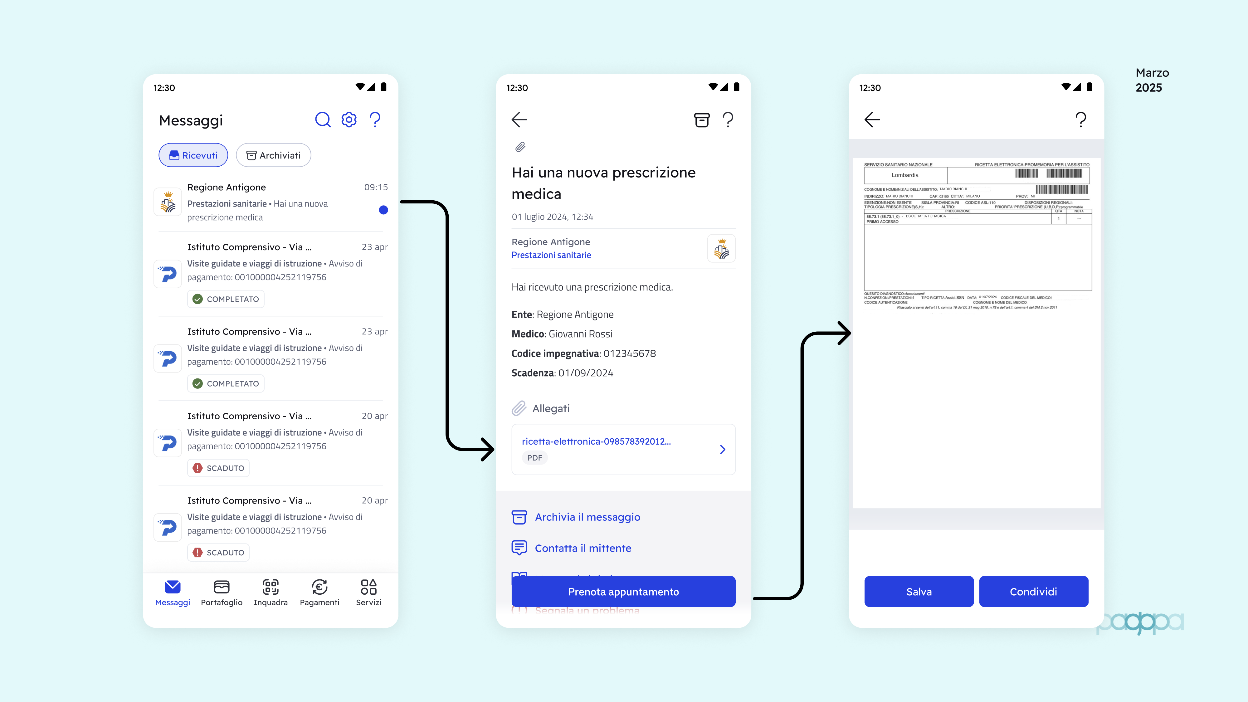 - eventuali allegati (es. ricetta in PDF);