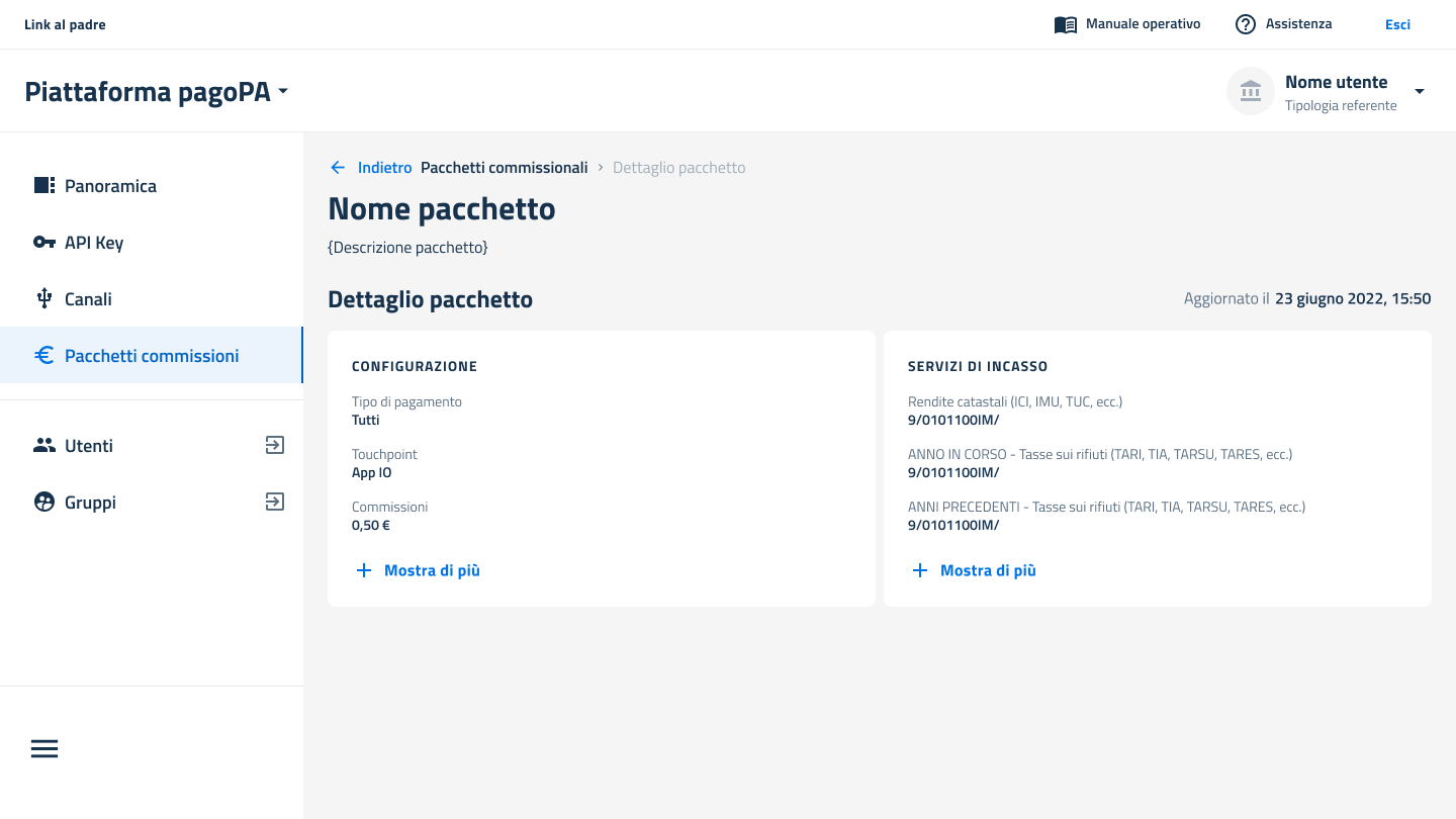 Accedendo ad uno specifico pacchetto (vedi sezione Visualizzazione pacchetti "Per tutti"), è possibile visualizzarne il dettaglio.