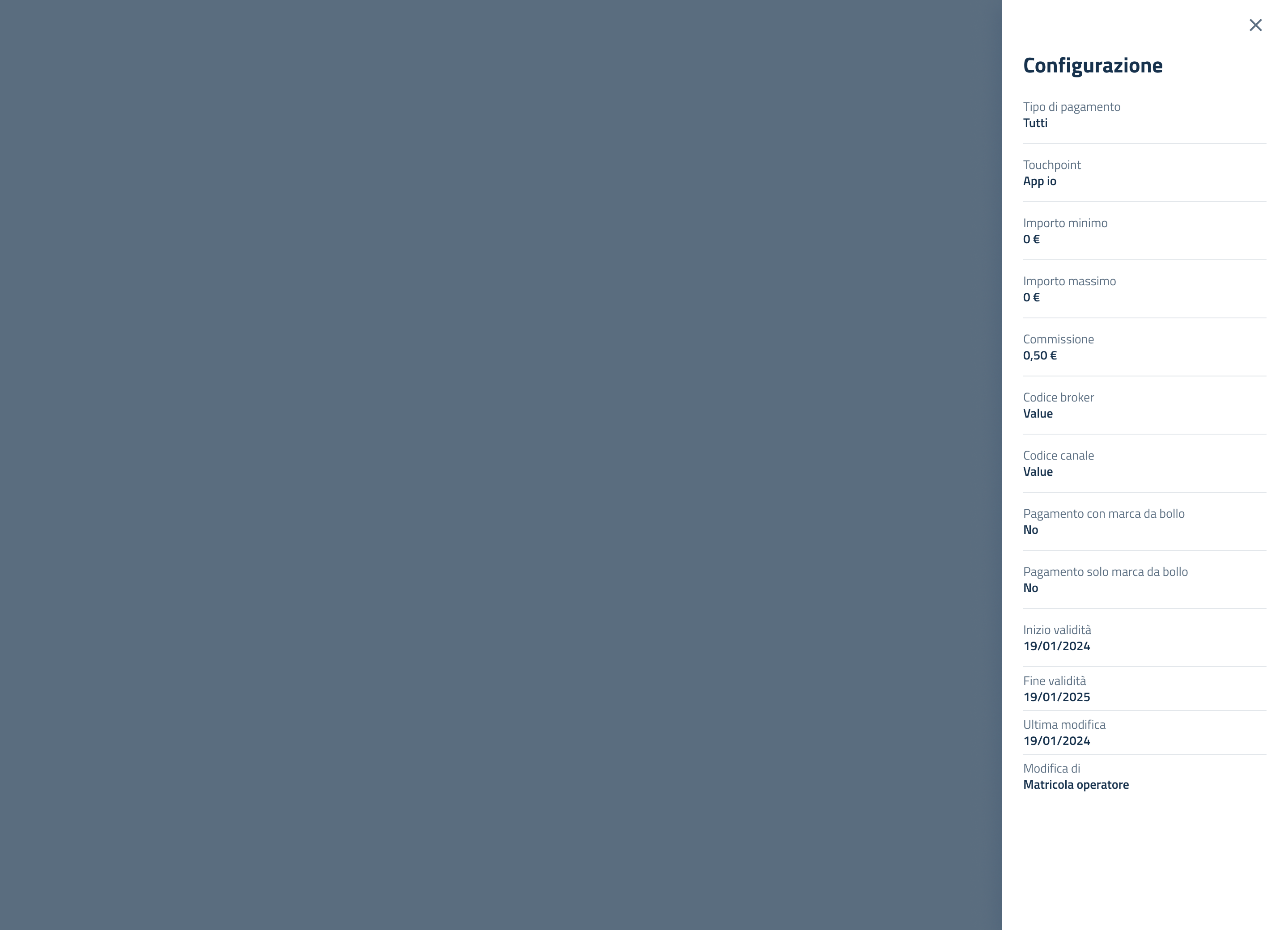 Cliccando sulle due etichette "+ Mostra di più" è possibile espandere il dettaglio in merito ai dati relativi alla configurazione, e in relazione ai servizi di incasso se presenti.