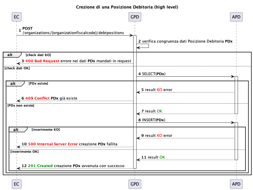 Nei seguenti sequence diagram si identifica con l'acronimo GPD il servizio di Gestione Posizioni Debitorie e con APD l'Archivio delle Posizioni Debitorie (base dati).