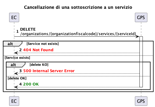 Con questa operazione è possibile cancellare la sottoscrizione ad un servizio precedentemente aggiunto.