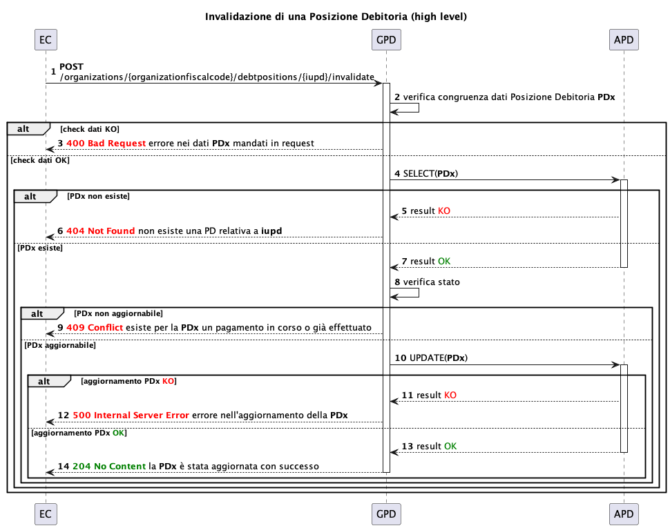 L'invalidazione di una posizione debitore consiste di fatto in una cancellazione logica. E' possibile solo partendo dagli stati PUBLISHED e VALID.