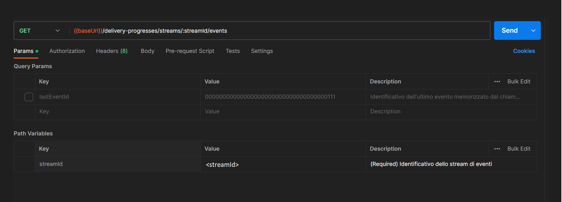 - <streamId>: inserire l'id dello stream che si vuole interrogare